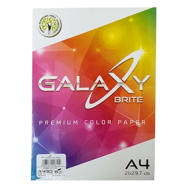 يأتي ورق النسخ الملون عالي الجودة من غالاكسي برايت بحجم A4 بألوان زاهية قياس 21x29.7 سم، 250 ورقة. وهو ورق مثالي للطباعة والنسخ .