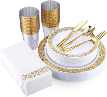 Aiiwanto 350Pcs Disposable Plate Set 50 Guest Food Plate Set Birthday Anniversary Party Plate Dinner Set Lunch Plate Set Christmas Party Accessories