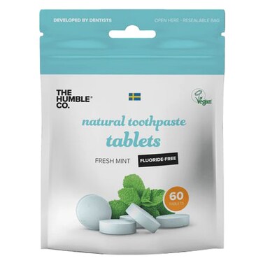 ذا همبل كو أقراص معجون أسنان طبيعية خالية من الفلوريد بنكهة النعناع المنعشة - أبيض 60 قرص
