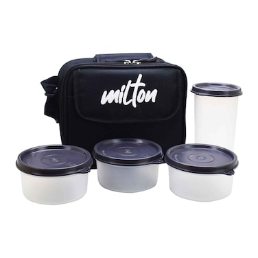 - إحمل وجبة كاملة مع مجموعة صندوق الغداء ميلتون هذه، يمكنك حمل وجبة كاملة حيث تأتي هذه المجموعة مع ثلاث حافظات طعام وزجاجة واحدة