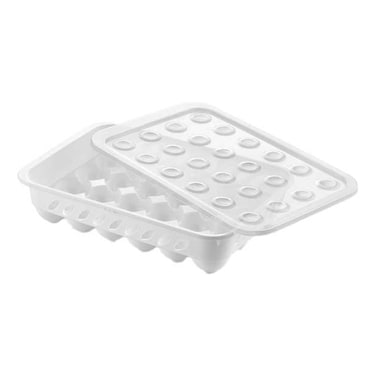 تصميمها المدمج يجعلها مثالية لتوفير المساحة في الثلاجة والحفاظ على تنظيم البيض.