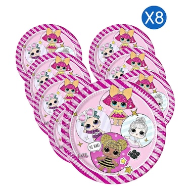 أل أو أل سربرايز! غليتراتي أطباق ورقية 23 سم 8 قطع - متعدد الألوان