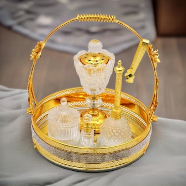 مبخرة بخور كريستال فاخرة من الصقر، حامل، ملقط، مزيل فتيل، زجاجة عطر وسلة زجاجية ذهبية للمنزل، ديكور وهدايا الزفاف، مبخرة فحم بخور، مبخرة عود، مبخرة بخور، مدخان، مبخرة