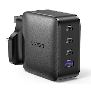 - 【65W Powerful Charger】: UGREEN 4 port USB C PD charger, with the combine power output of 65W, offers fast and efficient charging for laptop, tablet, phones, fully charge the Macbook Pro within 1.8h. 【4 Port USB C Charging Station】: Comes with 3 USB C ports and a standard USB-A port, the 65W USB C GaN charger allocates the power smartly and provides efficient power for 4 devices at the same time. 【Universal Compatibility】: This 65W GaN Tech USB C Charger is compatible with laptops like Steam Deck, Macbook Air/ Pro, HP Specter x360/ Envy / Elite, Dell XPS, Lenovo ThinkPad X1 Carbon/ Yoga, Huawei MateBook, Acer, Asus ZenBook 3, Google Pixelbook, Chromebook Pixel etc but also smartphones or tablets like iPhone 15 Pro/15 Pro Max/15 Plus/15, iPad 9, iPad mini 6, iPad Pro, iPhone 14 Pro/13/12, Galaxy S24 Ultra /S24+ /S24/ S23 Ultra/S23+/ S23/S22+, Oneplus 11/10, Xiaomi etc 【GaN Tech USB C Charger】: Adopt to the latest GaN Tech, the Type C PD QC 3.0 charger is smaller in size, cooler in use, and more efficient in power supply. Built-in with smart chipset, this USB C Wall Charger can protect your devices away from short-circuit, over-heating, over-voltage etc, providing safe charging for devices. 【Compact and Portable】: This lighter and smaller USB C Laptop Charger is a handy companion for you at home, in the office, or on the go. With multiple charging ports you are able to charge laptop and other mobile device simultaneously. 【What You Get】: 1 UGREEN 65W 4-Port USB C Charger, 1 user manual, 24-month warranty, 24-hour customer service, lifetime technical support.