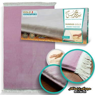 - Prayer Mat "Sundus Gold" with Memory Foam Filling - Suitable for All Ages, Especially the Elderly. This prayer mat is the best in providing complete comfort and maintaining joint and muscle safety during prayers and while sitting for Quran recitation. The memory foam is known for its ability to expand and contract according to pressure, and it is highly durable, lasting for a long time. It also regains its original shape after pressure is applied during prayers or sitting. "Sundus Gold" comes with an elegant and luxurious design, in a large and comfortable size, covered with a soft and smooth cotton fabric of the finest quality. It is equipped with a zipper for easy washing and storage. Available in multiple elegant colors. Made in Turkey. Dimensions: 80×130 cm Weight: 2.65 .