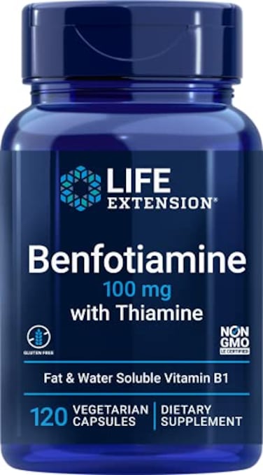 لايف إكستنشن بنفيتامين مع الثيامين 100 ملغ فيتامين B1 قابل للذوبان في الدهون والماء - خالٍ من الغلوتين، غير معدل وراثيًا، نباتي - 120 كبسولة نباتية