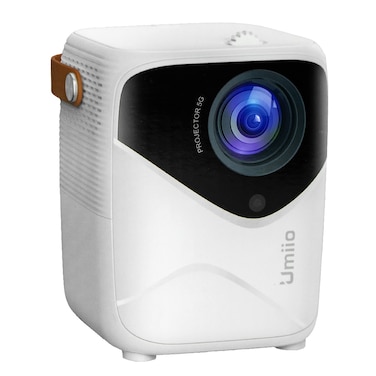 جهاز عرض فيديو محمول Umiio Q1 2.4/5G واي فاي وبلوتوث رباعي الزوايا شبه منحرف 0.8-5 متر مسافة عرض 1920 * 1080 دقة جهاز عرض اندرويد لنقل الموسيقى ولعبة التلفاز مع حامل ثلاثي القوائم - أبيض