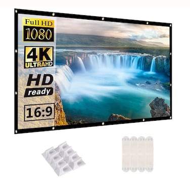 - <p><li>[ Foldable Projector Screen : Wownect Projection Screen introduces the silk-like elastic surface and durable black borders to elevate picture contrast and absorb projection light overshoot, allowing you to enjoy your favorite movies or sports games with an immersive cinema atmosphere anywhere you want. Equipped with mounting accessories like Hooks, 3m Stickers.<p><li>[ Big Screen Wider Viewing Angle : The 100 Inch screen with 16:9 aspect ratio creates a clear and bright picture that includes even more contents than you can see. Perfect for Office presentations, Gaming, Educations Purpose, home theater screen with 160 Degree wide viewing angle letting you experience the clear and brighter visual quality.<p><li>[ Thicker Material : Wownect Projector screens are is made from a thickened projection materials, which results in better resolution and clearer projection with your HD, 3D, 4K projector, the image will not pass through the screen as the traditional curtains. Lightweight and soft, the projection screen can be folded and go wherever you go.<p><li>[ Wrinkle Free : Engineered with anti-crease materials, the projection screen achieves better gain and flatter and clearer presentation. You can low iron with low heat and hang if any wrinkles appear. Projector movie screen is brighter than most other projection screens, smooth surface enhance image results.<p><li>[ Compatibility : : Perfect for all video resolution supports Full HD, 4k, 8K, 3D videos view with wide angle 160 degrees. Compatible with majority of CRT, LCD, DLP, DLV and home projector, office projector, and is suitable for outdoor projection, home theater cinema, office meeting, classroom training, public display, etc. Play games on a bigger screen.<p><li>White