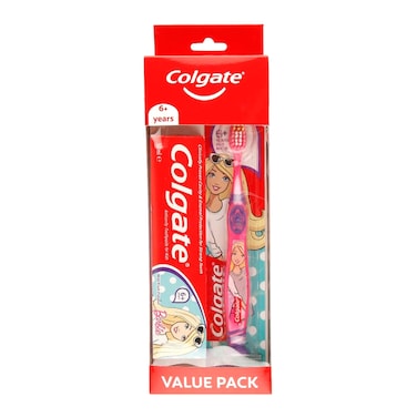 كولغيت معجون أسنان للأطفال بطابع باربي 50 ملل يأتي مع فرشاة أسنان للأطفال من عمر 6 سنوات فأكثر - متعدد الألوان