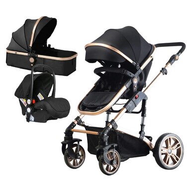 Aiwanto 3 in 1 Baby Stroller Luxury Pram Baby Stroller Lightweight Stroller Baby Push Chair Baby Carry Box Infant Stroller (Black)