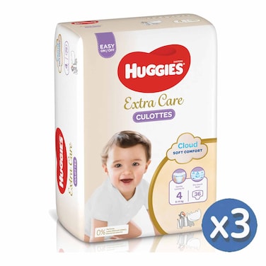 هجيز إكسترا كير سوفت كلاود حفاضات على شكل سروال للأطفال، المقاس 4، وزن 9-14 كلغ، 36 حفاض، من 3 قطع.