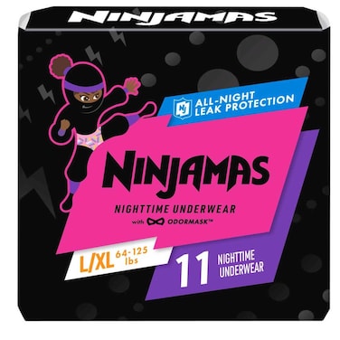 بامبرز نينجاماس حفاض سروال للتبول اللاإرادي الليلي للإستخدام مرة واحدة مقاس متوسط/كبير من 29 إلى 57 كغ 11 حفاض - متعدد الألوان