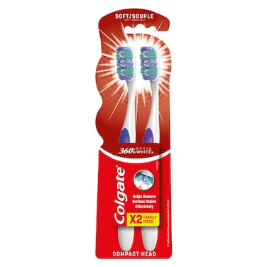 كولغيت 360 أوبتيك وايت فرشاة أسنان ناعمة لتبييض الأسنان، قطعتين