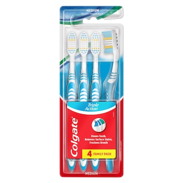 كولغيت تريبل أكشن فرشاة أسنان متوسطة الحجم - متعدد الألوان 4 قطع
