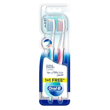 أورال-بي فرشاة أسنان ناعمة للعناية باللثة ومينا الأسنان قطعتان - متعددة الالوان