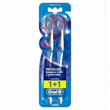 أورال-بي 3D وايت لوكس برو-فليكس فرشاة أسنان يدوية متوسطة، عبوة من 2