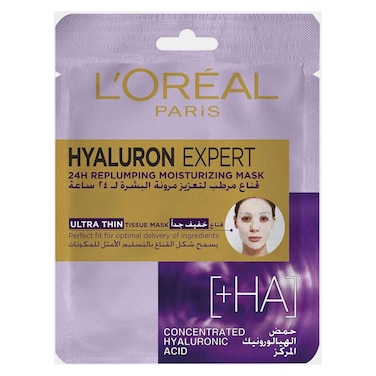 لوريال باريس قناع الأنسجة المرطب والمعبئ بحمض الهيالورونيك يدوم لمدة 24 ساعة 30 غرام - أبيض