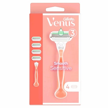 فينوس مقبض شفرة حلاقة ناعم للبشرة الحساسة مع 4 شفرات لإعادة الملء