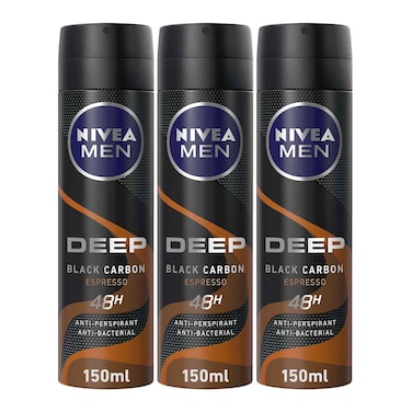 نيڤيا مزيل للعرق للرجال، ديب بلاك كاربون اسبريسو، بخاخ 150 مل عبوة تحتوي على ٣