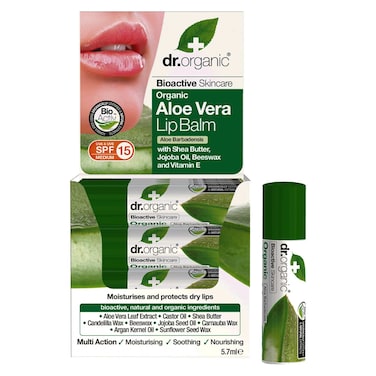 دكتور أورغانيك بيو أكتيف للعناية بالبشرة بلسم شفاه الألوفيرا بعامل حماية من الشمس 15 أخضر 5.7 ملل