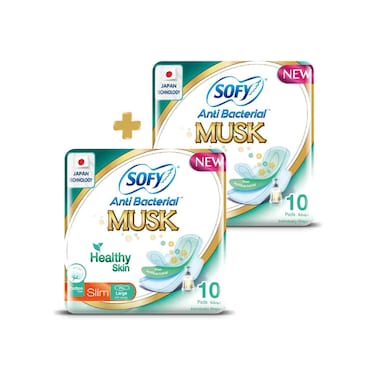 صوفي فوط صحية بقطن المسك المضاد للبكتيريا رقيقة حجم كبير مع أجنحة - أبيض - 10 فوطة حزمة من 2