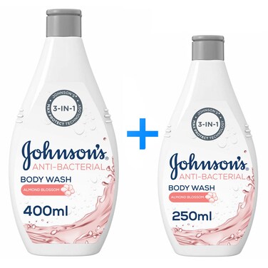 جونسون غسول الجسم بزهر اللوز المضاد للبكتيريا 400 ملل + 250 ملل.