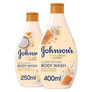 جونسون فيتا- ريتش غسول جسم سموذيز إندلجين بالزبادي والخوخ وجوز الهند 400 ملل+ 250 ملل - أبيض