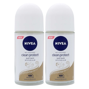 نيفيا كلين بروتكت مزيل عرق ببكرة دوارة بالألوم النقي 50 ملل حزمة من 2