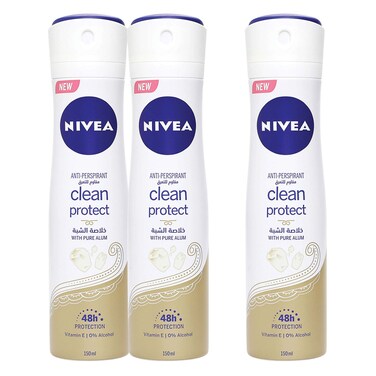 بخاخ مزيل العرق من نييا للنساء كلين بروتكت بيور ألوم 150 مل عبوة من 3 قطع