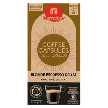 كارفور بلوند اسبريسو قهوة متوسطة التحميص 6 قهوة 10 كبسولات