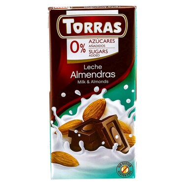 توراس لوح شوكولاته الحليب واللوز خالي من السكر 75 غرام