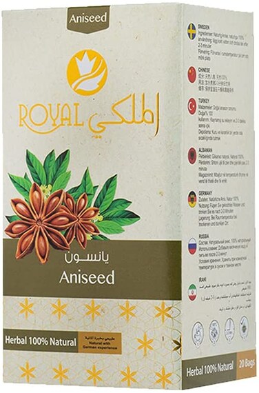 من حبوب اليانسون المنتقاة بعناية فائقة، يقدم الملكي شاي اليانسون اللذيذ جداً. بالإضافة إلى لذة الطعم يقدم شاي اليانسون العديد من الفوائد الصحية مثل: