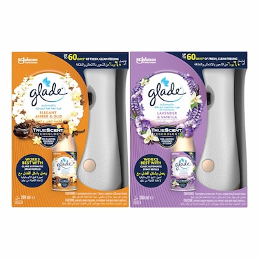 غليد بخاخ معطر الجو بعبوة إعادة تعبئة أوتوماتيكية بالعنبر والعود 269 ملل + بخاخ معطر الجو بعبوة إعادة تعبئة أوتوماتيكية بالفانيليا 269 ملل
