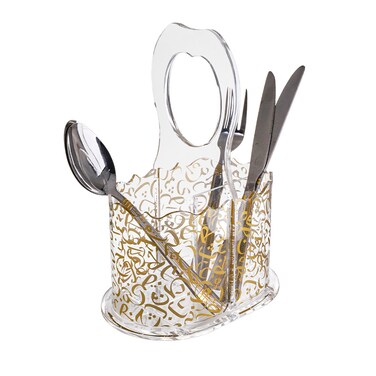 AlHoora, 18x10x25cm Cutlery Holder With Gold Arabic Design On The Body , Wave Edge On Top Border , Gift Box