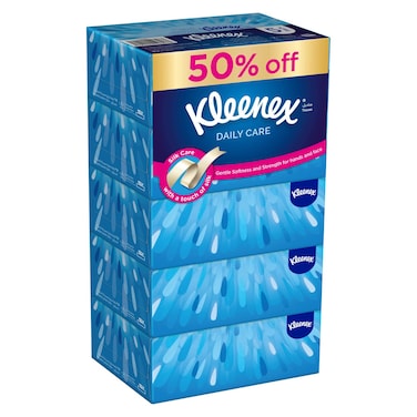 كلينكس مناديل وجه للعناية اليومية – أبيض 170 منديل حزمة من 5