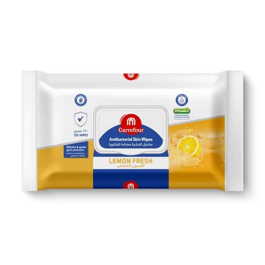 كارفور مناديل مبللة منعشة للبشرة المضادة للبكتيريا 120 منديل - أبيض
