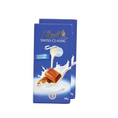 ليندت سويس لوح شوكولاته بالحليب 100 غرام حزمة من 2 .