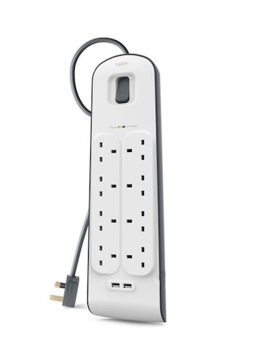 شاحن منزلي بثمانية منافذ مع منفذين (يو اس بي) من بيلكن - ابيض