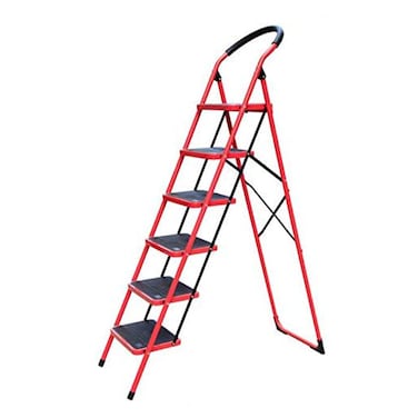 سلم منزلي من 6 درجات قابل للطي من ابسبيريت ، آمن ومحمول ، مع مقبض مقاوم للانزلاق وبخطوات واسعة احمر