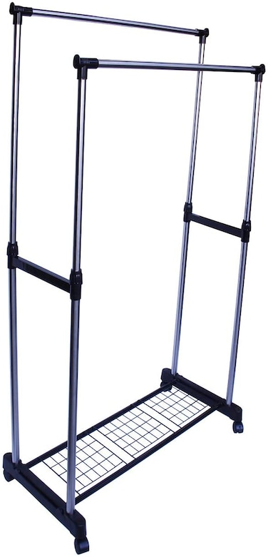 علاقة ملابس دورين تلسكوبية بعمود مزدوج ، اسود