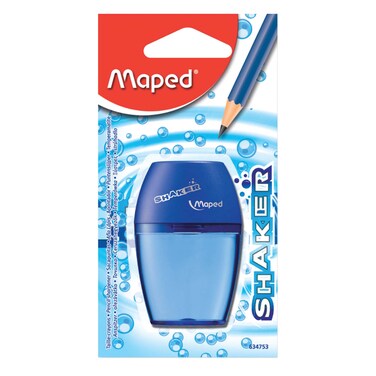 مبراة بفتحة واحدة من مابيد شاكر باللون الأزرق هي مبراة أقلام مدمجة ومريحة.