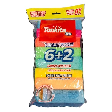 أريكس تونكيتا فوطة قماش ميكروفايبر من الألياف الدقيقة 8 قطع - متعددة الألوان 28605 عبارة عن مجموعة من 8 قطع فوط من الألياف الدقيقة عالية الجودة مثالية لتنظيف الأسطح المختلفة.