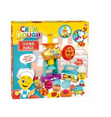 Let's create cute pretend cookies that smell simply scrumptious. Crea Dough Cookie Maker dough is colourful, and smells spectacular. Best of all, if you leave your Crea Dough out of the container and it dries out you can rehydrate it with water. This Crea Dough Cookie Maker set comes with fun baking accessories and 4 tubs of Crea Dough for modelling dough.