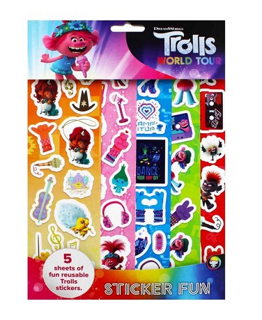 Discover amazing sheets of reusable fun Troll stickers of all your favourite Troll World Tour characters! Create your own pictures, make party invites of decorate sketch pads and much more!