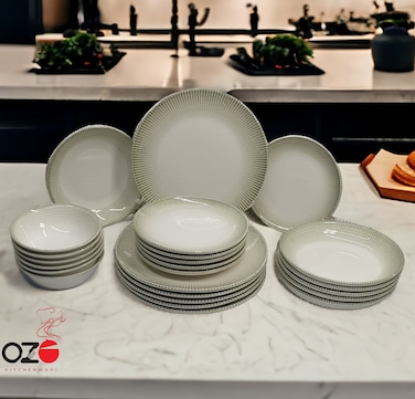 طقم صحون السفرة من OZO مكون من 24 قطعة مصنوعه من البورسلان التركي هو الإضافة المثالية لأي مائدة طعام.