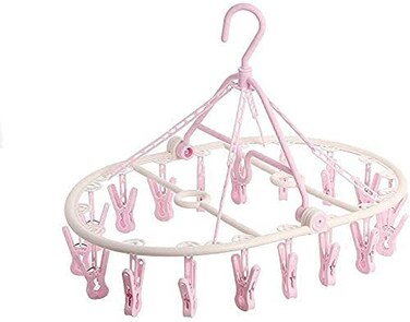 2Pcs Drying Clips Home Material Drying Rack Clips and Drip Rotatable Rack with 18 Clips Socks Balcony Home Rack (Pink)