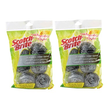 سكوتش برايت ليفة حلزونية من الستانلس ستيل لتنظيف أواني الحديد 12 قطعة - فضي