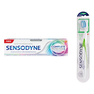 سنسوداين معجون أسنان للحماية الكاملة+ تبييض متطور 75 ملل - أبيض، مع فرشاة أسنان