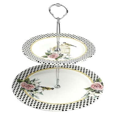 صحن الكعك ذو الطابقين روزي باللون الأبيض هو إضافة جميلة وأنيقة لأي مطبخ أو طاولة طعام.