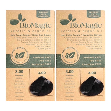 بيو ماجيك كريم عضوي لصبغ الشعر بالكيراتين وزيت الأرغان خالي من الأمونيا - 3.00 بني 2 قطع